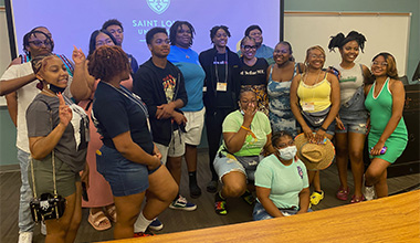 We devoted the day to an Intel® FutureSkills Workshop, led by the  Intel Corporation  team in partnership with  World Wide Technology  with volunteers from both companies. The scholars participated in several experiential activities that allowed them to think differently about  embracing failure, flexibility, patience, and more. After donning their professional attire, our soon-to-be collegians headed to our Collegiate Prep Edward Jones Networking Night. After a session on how to leverage LinkedIn led by Edward Jones team members Jenna King and Juan Carbajal (a Boys Hope Girls Hope alumnus), they had the opportunity to have a professional head shot taken and engaged in a speed-networking reception to learn about careers with a diverse group of professionals from different industries and fields. We ended the night with a pizza party and a hangout session at SLU’s Spring Hall.